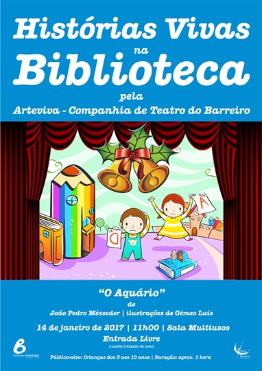 No próximo dia 14 de janeiro, pelas 11h00, terá lugar a primeira sessão do ano de “Histórias Vivas na Biblioteca”, desta vez, dedicada ao livro “O Aquário”, de João Pedro Mésseder, com ilustrações de Gémeo Luís, na sala multiusos da Biblioteca Municipal do Barreiro.