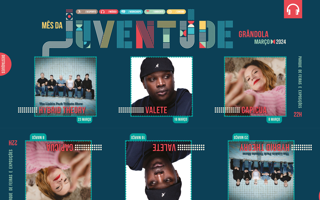 Em Grândola, as luzes estão prontas para se acender e dar palco ao Mês da Juventude, que se celebra de 2 a 29 de março de 2024. Este ano, a celebração anual ganha ainda mais protagonismo ao receber os concertos ímpares de Capicua, Valete e Hybrid Theory, banda de tributo aos eternos Linkin Park, numa fusão de talento, ritmo e homenagens musicais que prometem elevar a experiência deste evento único.