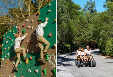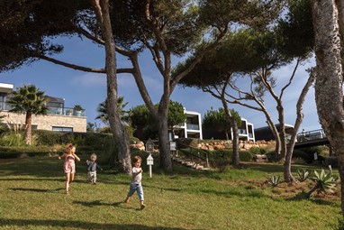 Num resort com 220 hectares ricos em natureza, é o espaço exterior que faz as honras da casa no que toca a diversão. Além das várias piscinas, o parque infantil com o trampolim, a parede de escalada, os baloiços, os escorregas, o famoso minigolfe, os passeios de bicicleta e os piqueniques em família são meio caminho andado para uma estadia animada. Ao lado da piscina familiar do resort, existe também o Kids Club, onde não faltam insufláveis, circuito de piscina de bolas, sala de jogos, material para trabalhos manuais e vários brinquedos. Nos quartos podem ainda ser montadas pequenas tendas com brinquedos que garantem a diversão indoor da pequenada.