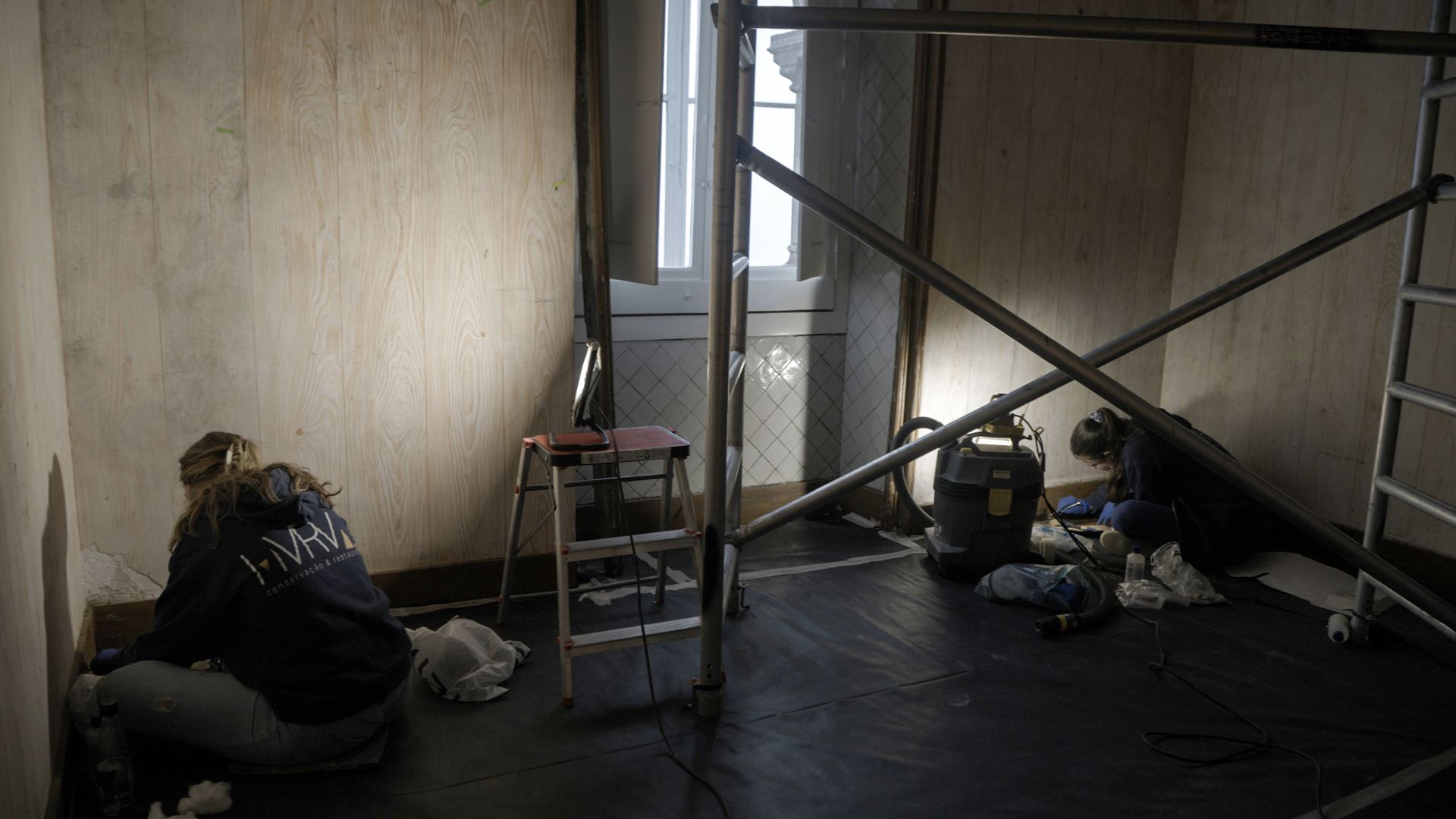 Trabalhos de conservação e restauro, que também abrangem o Quarto do Veador e o respetivo WC, recuperam a cor que tinha sido ocultada por uma intervenção do século XX No Palácio Nacional da Pena, as intervenções de conservação e restauro continuam a revelar pedaços da história que o tempo quase apagou.
