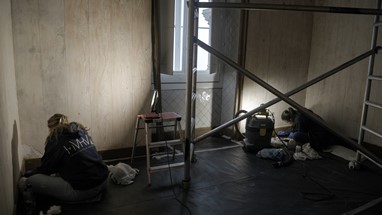 Para devolver esta memória histórica ao Quarto das Damas, a camada do século passado está a ser removida e o tom azul seco vai voltar a cobrir as suas paredes. O Quarto do Veador e o WC adjacente estão, também, a ser recuperados, no âmbito do Plano de Manutenção do Palácio Nacional da Pena.