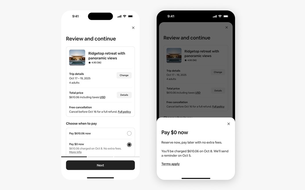 A modalidade Reserve agora, Pague depois junta-se às opções de pagamento flexível que a Airbnb já disponibiliza, com o objetivo comum de tornar as viagens mais acessíveis. Entre estas opções encontram-se Pagar uma parte agora e o resto mais tarde, que permite pagar uma parte no momento da reserva e o restante mais perto da data de check-in, bem como o Pagamento a prazo com a Klarna.