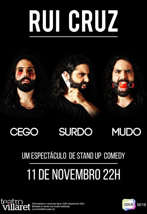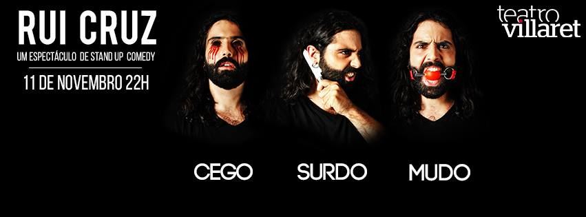 Depois de "Aristocratas", "Ruído Negro", "Overdose" e "Anjos Negros", Rui Cruz estreia-se a solo com o escpectáculo de stand-up comedy "Cego Surdo e Mudo" no próximo dia 11 de Novembro, às 22h00, no Teatro Villaret.