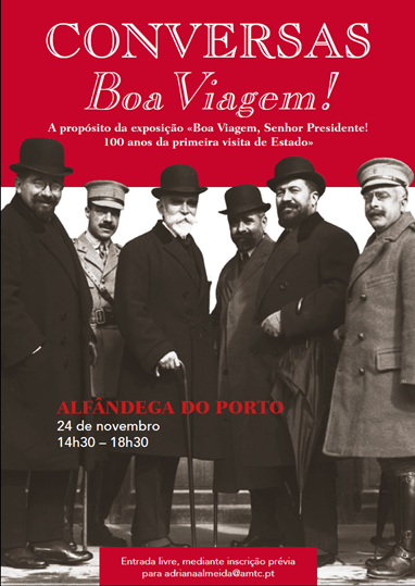 No próximo dia 24 de novembro, o edifício da Alfândega do Porto recebe o dia de conversas a propósito da exposição “Boa Viagem, senhor Presidente! 100 anos da Primeira Visita de Estado”.