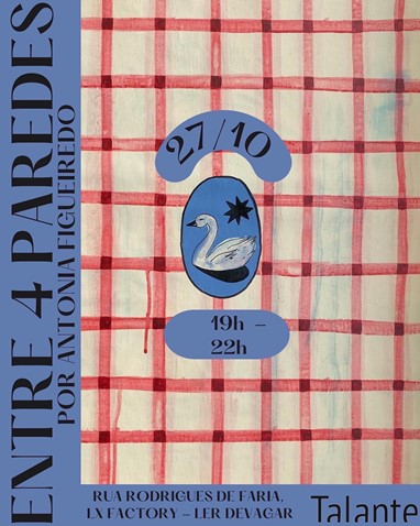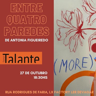 Depois de apresentar coleções de artistas consagrados, como Ferreira Gullar e José Eduardo Agualusa, o Espaço Talante abre as suas portas para uma jovem artista em sua primeira exposição individual. Aos 25 anos, porém, Antonia Figueiredo já tem um currículo estrelado. Graças ao seu forte trabalho nas redes sociais, as suas obras já chamaram a atenção de celebridades internacionais, como as atrizes estadunidenses Drew Barrymore e Brooke Shields. A brasileira também trabalhou com marcas como Meta, Bvlgari, La Mer, além de ter assinado a capa do disco mais recente de Alice Caymmi. A coleção “Entre 4 paredes”, que entra em cartaz no centro cultural da LX Factory no dia 27 de outubro, marca a transição de Antonia da arte digital para a pintura.