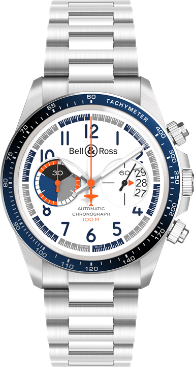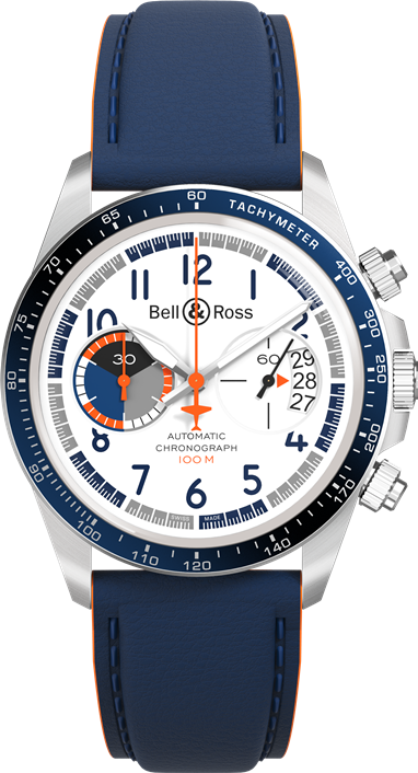 No mostrador, os números têm a mesma tipografia que os contadores de bordo e a janela da data mostra três números – uma referência direta aos instrumentos de voo. O toque final é dado pela silhueta do avião no fundo e na base do ponteiro dos segundos (na versão de três ponteiros) e no contador dos segundos (na versão de cronógrafo). Com um fundo em aço de 38,5 mm para o BRV1-92 e de 41 mm para o BRV2-94, ambas as versões são alimentadas pelo movimento mecânico de corda automática.