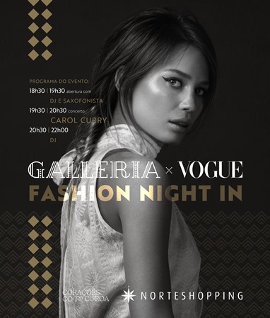 A Vogue Fashion Night In tem início marcado para as 18h30 e inclui um programa musical especial. A festa começa com DJ e saxofonista, até às 19h30, seguido de um concerto de uma hora com a cantora e influenciadora Carol Curry. Até às 22h00, está garantida animação musical com DJ.