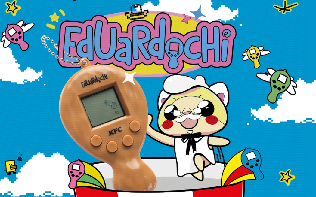 A tradição do Natal na KFC ainda é o que era! Ou seja, a KFC acaba de lançar mais uma novidade surpreendente e que promete animar esta época festiva de forma revivalista - o Eduardochi, uma mascote virtual inspirada nas mascotes digitais dos anos 90.