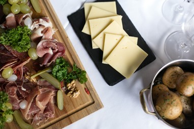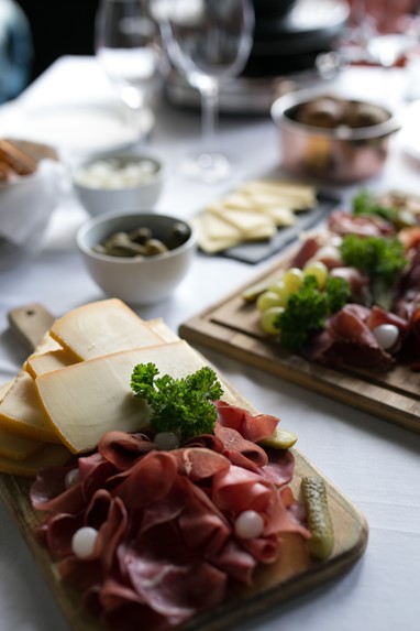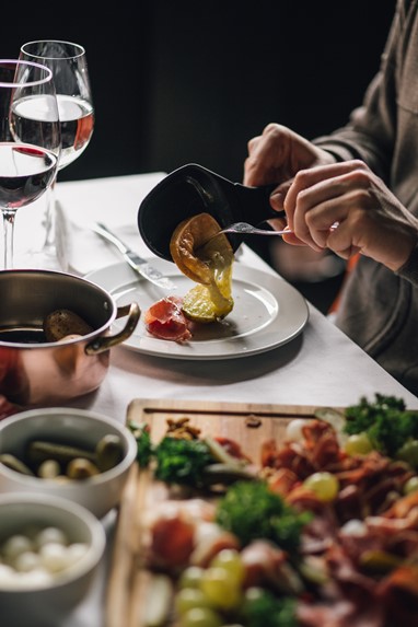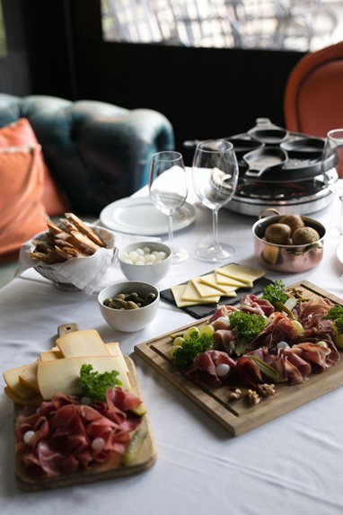 Já o menu em que a raclette é a estrela surpreende não só pela preocupação de selecionar o melhor queijo, mas também pelas diferentes carnes frias, batatas assadas, cogumelos, pickles e variados pães.