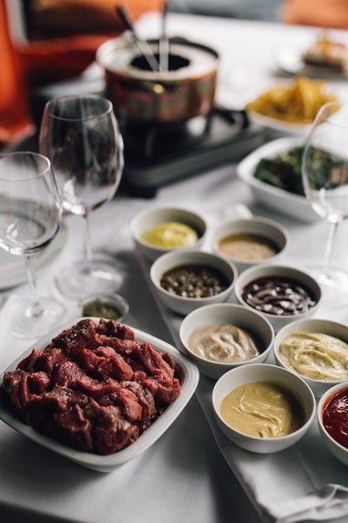 No ambiente sofisticado, mas caloroso do Olivier Avenida, o menu de fondue de carne propõe uma verdadeira viagem por sabores requintados que promete deliciar sobretudo os apreciadores de “confort food”. Para acompanhar uma impressionante seleção de carnes, surge um verdadeiro “festival” de oito molhos a pensar nos palatos mais exigentes.