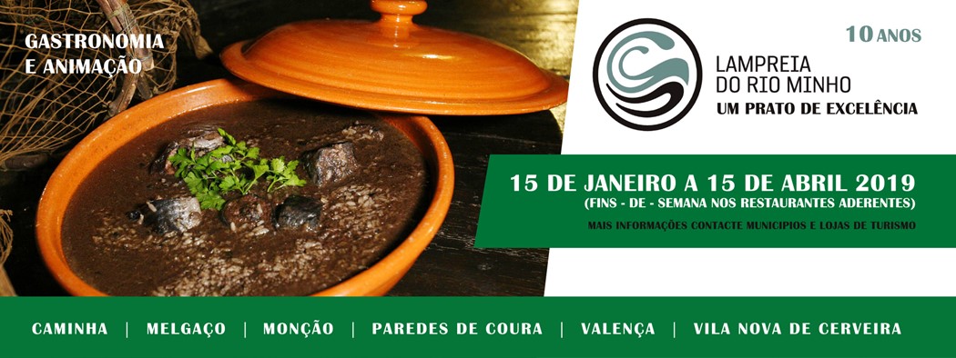 A afamada e saborosa Lampreia do Rio Minho já chegou à mesa dos restaurantes da região para deliciar os apreciadores desta iguaria. Até 15 de abril de 2019, a ADRIMINHO e os seis municípios do Vale do Minho - Caminha, Melgaço, Monção, Paredes de Coura, Valença e Vila Nova de Cerveira promovem a 10.ª edição da iniciativa “Lampreia do Rio Minho – Um Prato de Excelência”.