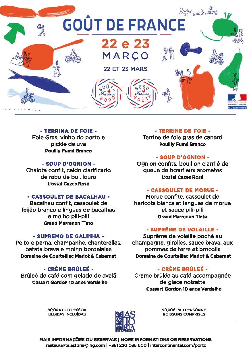 O Astória, restaurante do InterContinental Porto, junta-se à iniciativa Gôut de France/Good France, que reúne cerca de 5000 chefs de todo o mundo para prestar homenagem à gastronomia gaulesa, pautada pelos valores da partilha, prazer e respeito pelo “bien-manger”.