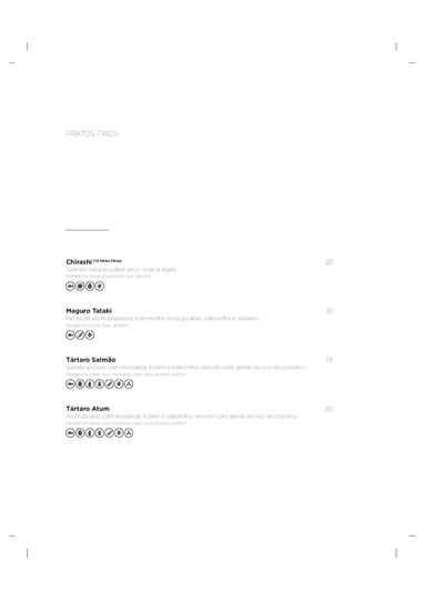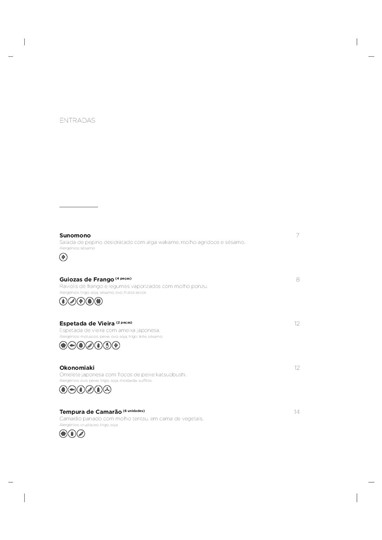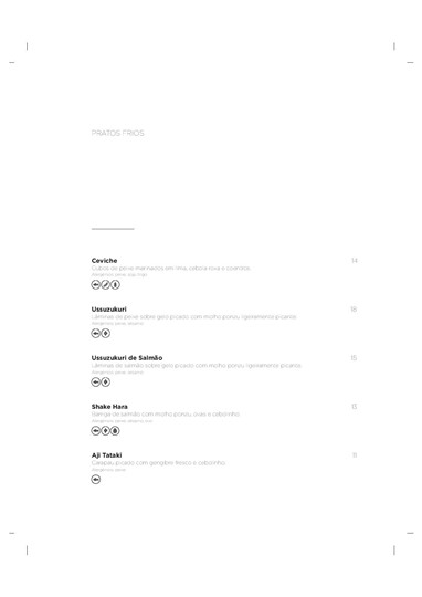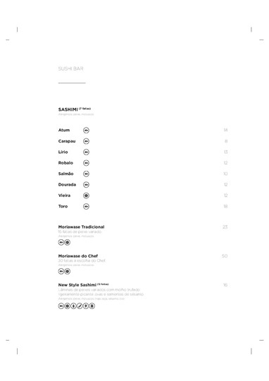 Através de uma oferta diversificada preparada pelo Chef Agnaldo Ferreira, que privilegia a utilização dos produtos mais frescos e o respeito pelos sabores tradicionais, a nova carta do restaurante portuense vem introduzir mais opções, incluindo propostas vegetarianas, apresentando um conjunto de entradas, pratos frios e quentes e uma série de pratos de sushi.