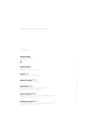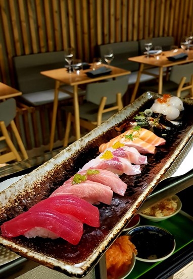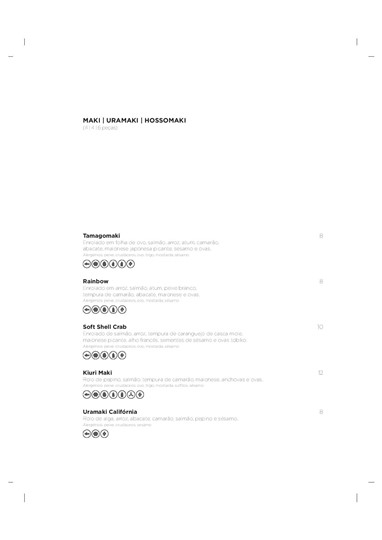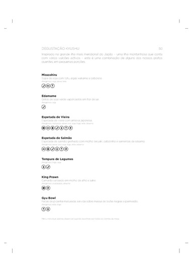 Para além destas escolhas, pode ainda optar por dois menus de degustação: o Hokkaido (60€), representativo das diversas correntes gastronómicas do Japão, ou o Kyushu (50€), que resulta na combinação de pequenas porções de pratos quentes.