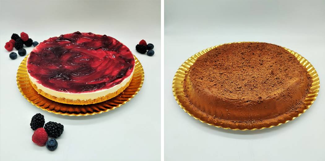 de Chocolate sem glúten (24,99€), ou o Cheesecake de Frutos