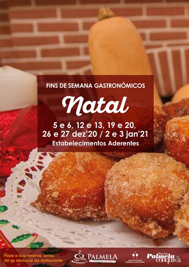 Na época festiva que se aproxima, saboreie as melhores propostas gastronómicas natalícias, nos melhores restaurantes do concelho de Palmela! Nos fins de semana de 5, 6, 12, 13, 19, 20, 26 e 27 de dezembro e 2 e 3 de janeiro, o Município de Palmela promove uma edição Palmela Experiências com Sabor - Especial de Natal, integrada no programa do “Viva o Natal no Município de Palmela”.