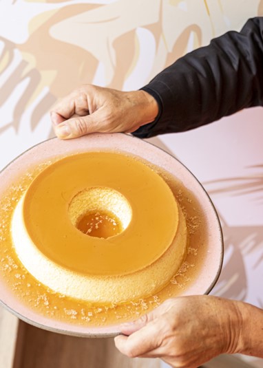“Lembro muito da minha avó debruçada no lume a furar o pudim com o palito para conferir o ponto certo. Depois, passávamos horas a fio reunidos à volta da mesa. O pudim tem esse poder de reunir as pessoas. A minha ideia é resgatar isso”, diz ela.