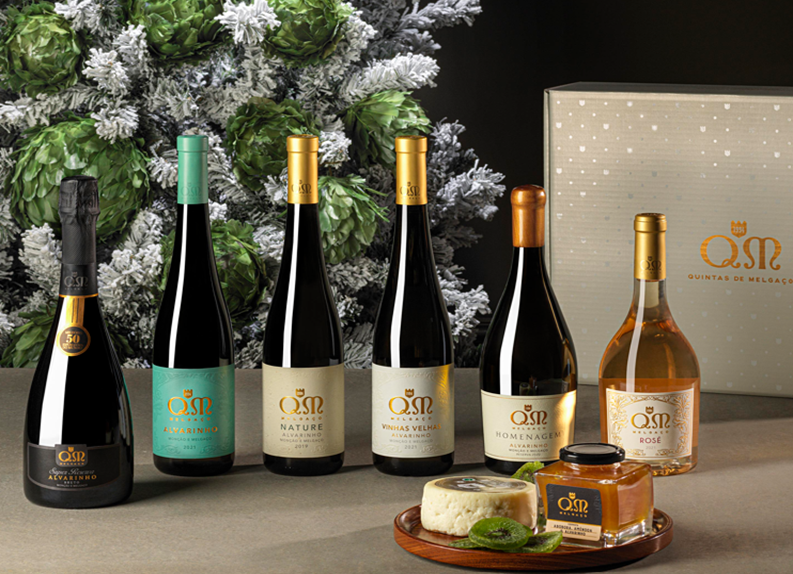 O primeiro, o Cabaz Tradição, traz consigo duas referências de vinho, um tranquilo, outro espumante, ambos monocastas Alvarinho com um grande potencial gastronómico, pelo que servi-los à mesa é promessa de uma união feliz. Ei-los: o QM Homenagem, um vinho que nasceu para celebrar o fundador da Quintas de Melgaço, e o QM Espumante Alvarinho Super Reserva.
