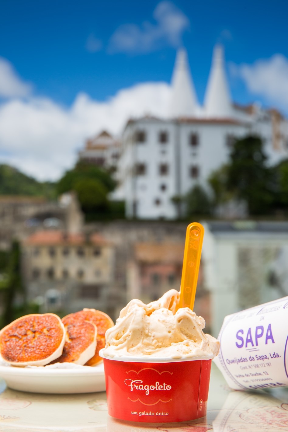Esta viagem pelo mundo começa em Portugal com um inovador gelado de queijada de Sintra da famosa Casa da Sapa. É o resultado de uma parceria entre a Fragoleto e a Casa da Sapa, a mais antiga de entre as 5 marcas de queijadas de Sintra que mantém até hoje um fabrico inteiramente artesanal.