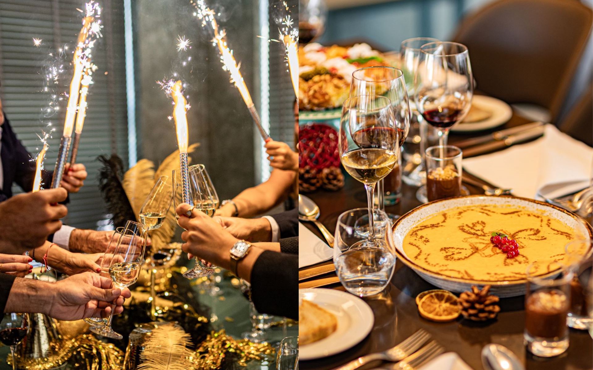 O dia de Natal é celebrado num ambiente familiar e acolhedor. O couvert de pão artesanal com queijo creme, mel e nozes abre o apetite para um delicado Creme de castanhas assadas com cogumelos Portobello, funcho e avelã. O Filete de dourada com crosta de broa e azeitonas sobre cremoso de vegetais antecede o tradicional peito de Peru recheado com frutos secos e farinheira, acompanhado por arroz de especiarias e legumes de inverno. A refeição termina com um generoso buffet de sobremesas natalícias, harmonizado com vinhos Adega Mãe PHC Hotels Colheita Particular e demais bebidas de seleção.