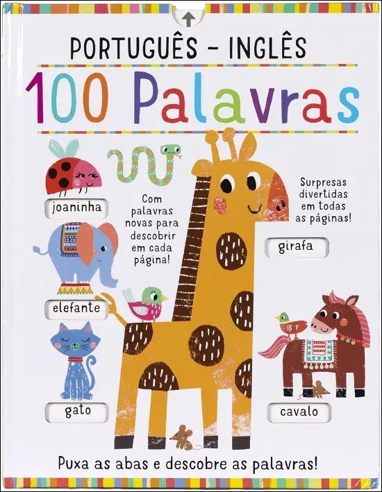 As crianças vão adorar aprender 100 novas palavras em português e em inglês, com este livro interativo. As palavras que aparecem quando se deslizam as abas revelam a versão em inglês do nome de cada imagem. Com perguntas simples e muitas descobertas, as crianças vão ser incentivadas a observar e a falar sobre o que veem nas imagens, desenvolvendo, assim, o seu vocabulário em português e em inglês.