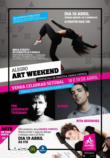 O Centro Comercial Alegro Setúbal vai receber no próximo fim-de-semana, dias 18 e 19 de Abril, o Alegro Art Weekend, na zona de lazer exterior. O evento vai reunir mais de 1000 artistas que realizarão demonstrações de diversas modalidades, como hip-hop, danças de salão, ginástica rítmica, step, zumba, entre outras.