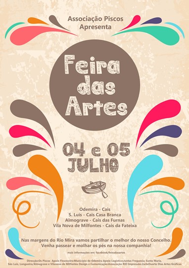 Nos próximos dias 4 e 5 de julho, entre as 10.00 e as 24.00 horas, irá decorrer a 2ª edição da Feira das Artes, no rio Mira e nos cais fluviais de Odemira, Casa Branca (freguesia de S. Luís), Fateixa (freguesia de Vila Nova de Milfontes) e Furnas (freguesia de Longueira/Almograve).