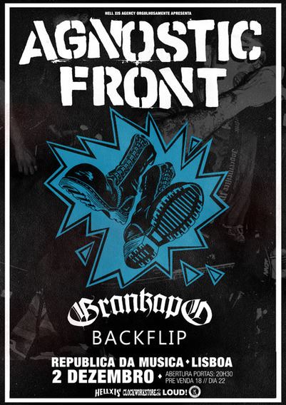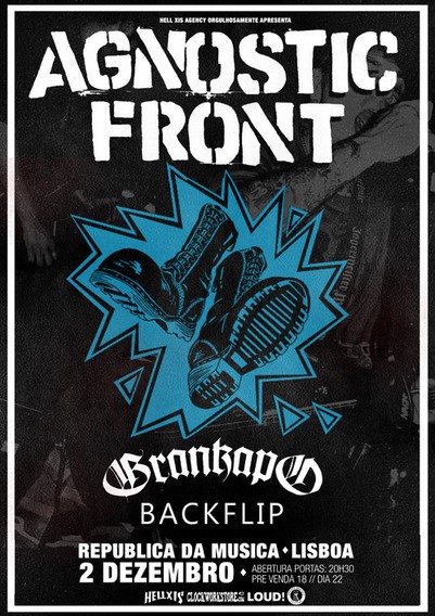 Esta segunda-feira, 2 de Dezembro de 2013, os míticos Agnostic Front estão de regresso a Lisboa para um concerto único. Depois do concerto de domingo no Hard Club, no Porto, é agora a vez da República da Música receber o colectivo de Nova Iorque.