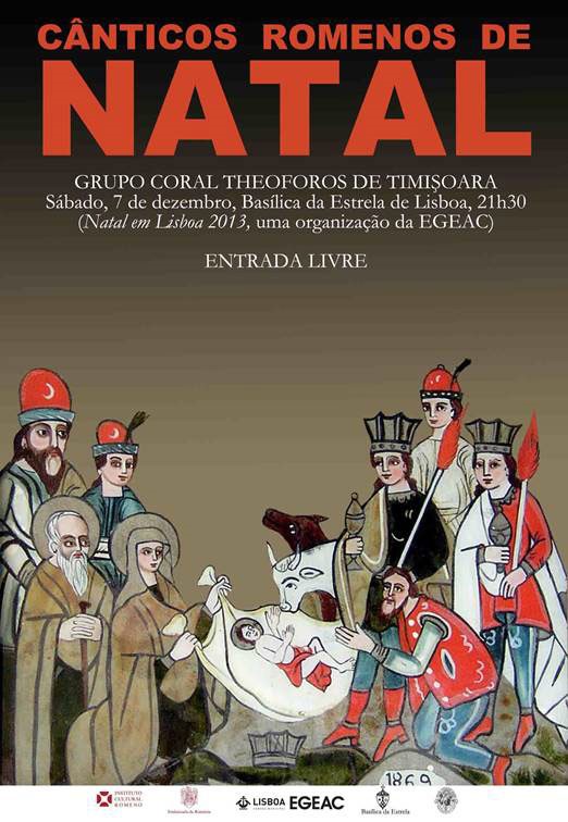 Desde 2006, o Instituto Cultural Romeno em Lisboa (ICRL) instituiu a tradição de celebrar o Natal em igrejas portuguesas, através de concertos de coros masculinos, à capela, cujo reportório respeita sempre uma linha sacra. Este ano, através de uma parceria ICRL/ EGEAC, é a vez do coro romeno “Theoforos” abrir Natal em Lisboa, uma organização da EGEAC, com Cânticos Romenos de Natal, no dia 7 de Dezembro, às 21h30, na Basílica da Estrela.