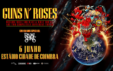 Os ícones do rock Guns N’ Roses acabam de anunciar uma extensa digressão pela Europa e Médio Oriente no verão de 2025, com passagem em Portugal a 6 de junho no Estádio Cidade de Coimbra. A banda, acompanhada por convidados especiais Rival Sons irá encabeçar estádios e festivais em 24 cidades. A tour começa no dia 23 de maio e inclui estreias em países como Arábia Saudita, Geórgia e Luxemburgo, além de regressos a palcos familiares em Portugal, Espanha, Itália, Alemanha, Reino Unido e outros.