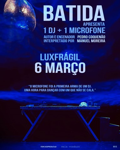 No dia 6 de Março, às 22h30, o Lux Frágil, em Lisboa, será palco de uma apresentação única de “1 DJ + 1 Microfone”, a estreia de Pedro Coquenão na escrita para teatro e encenação, com um texto autobiográfico.