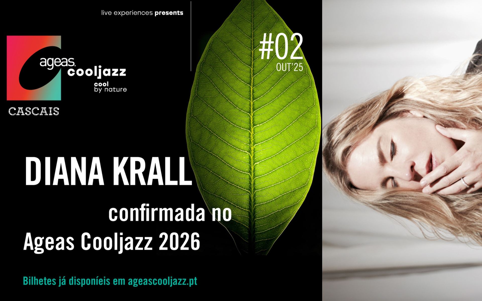 O ícone mundial do jazz está confirmado no Ageas Cooljazz 2026. Diana Krall atua no dia 22 de Julho de 2026, no Hipódromo Manuel Possolo, em Cascais. Cantora, pianista e produtora, Diana Krall é um fundamental na história do jazz universal. Com uma voz inconfundível, a artista desde cedo conquistou o público e a crítica. Natural do Canadá, a abordagem musical distinta destacou de imediato Diana Krall pela singularidade das suas composições e interpretações dos clássicos. A relação com o festival é longa e em 2026 é hora de reforçar os laços.