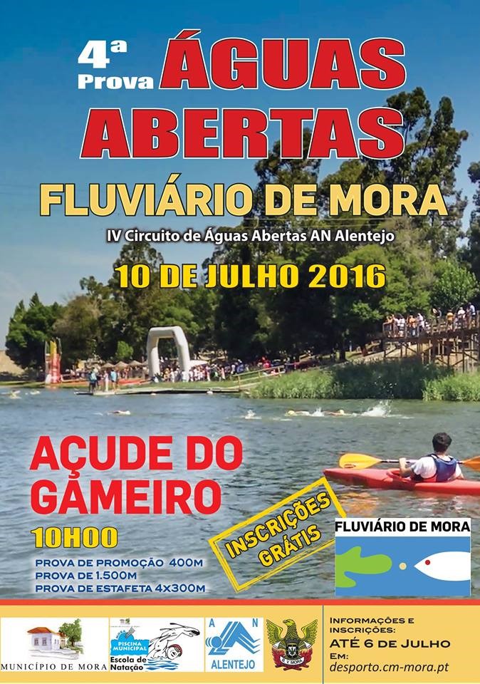 A autarquia de Mora realiza no domingo, 13 de Julho, a quarta edição da prova Águas Abertas Fluviário de Mora.