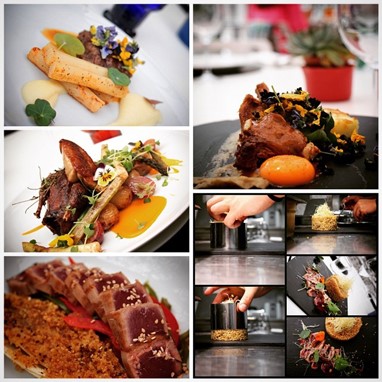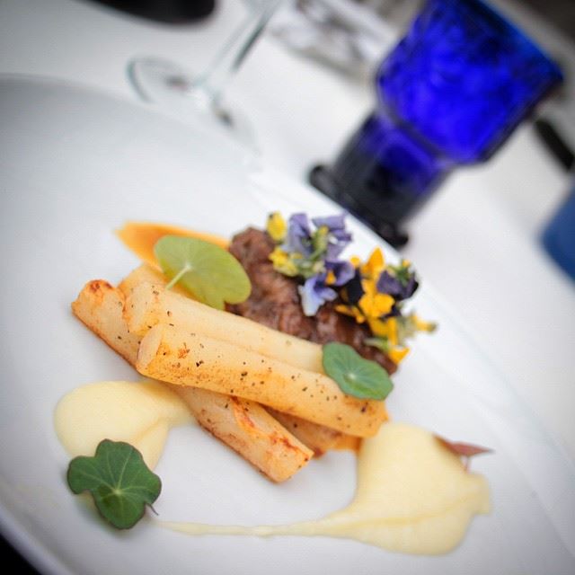 Nos peixes… “Bacalhau à Rota das Sedas”, “Tataki de atum com puré de aipo e endívia crocante”, “O Nosso bacalhau à Braz” e “Pregado com puré de cogumelos e esparregado” , bem como nas Carnes: “Arroz de pato à Nossa Moda”, “Naco da vazia à Portuguesa”, “Costeletas de borrego com puré de beringela e batata prensada”, “Barriga de porco com foie gras, puré de cenoura e leguminosas”, são os manjares que rememoram o típico luso.