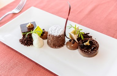 Para terminar a refeição, os sabores das sobremesas recaem entre uma pavlova com mousse de coco e merengue, cremoso de ananás e granité de rum e um delicioso chocolatíssimo - ideias e tentações sobre o chocolate.