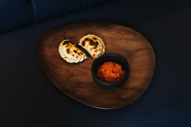 No Aires, o preâmbulo gastronómico começa com um couvert de sabor regional composto por chips de pão caseiro e tortilha andina grelhada, maionese de aipo e paté de beringela e tomate.