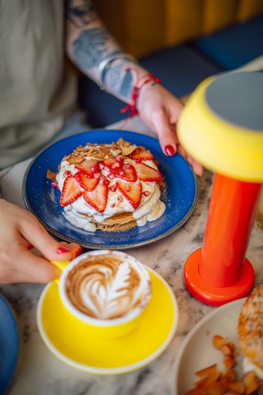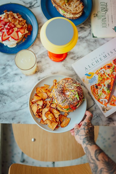 Com um novo ar inspirado na cultura pop das grandes décadas, o espaço ganhou mais personalidade, com vinis de bandas icónicas expostos com curadoria e intenção, bolas de espelhos suspensas no teto, alguns clássicos da literatura e uma paleta de cores vibrantes a preencher cada canto, o cenário perfeito para desfrutar de refeições pensadas para qualquer momento do dia.