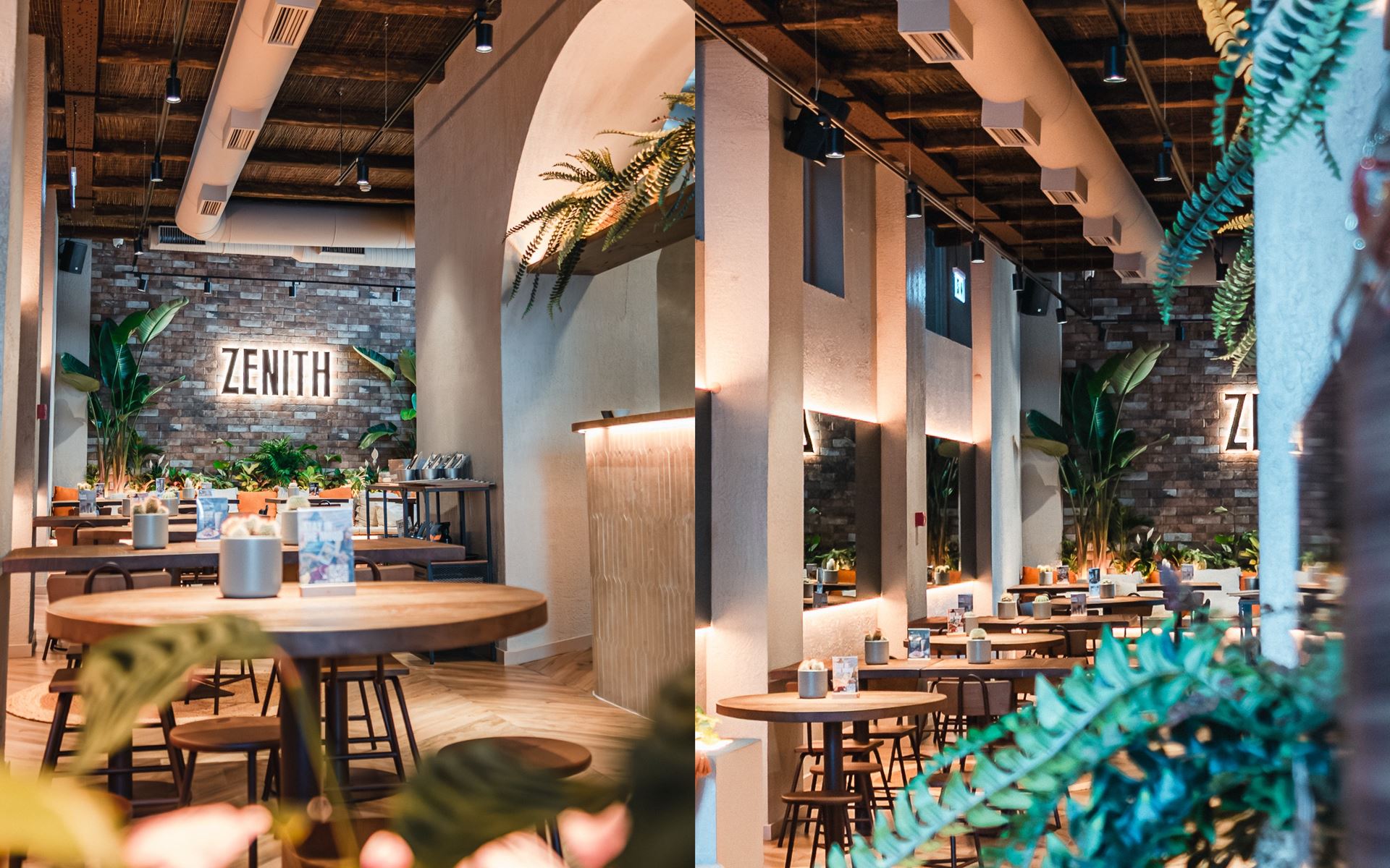 Mais do que uma nova morada, este espaço simboliza a evolução do Zenith. Inspirado no branding mais recente da marca, o novo restaurante apresenta uma arquitetura e imagem alinhadas com as aberturas mais recentes - como Matosinhos - privilegiando uma atmosfera tranquila e natural. A paleta de cores suaves e luminosas, em tons areia e apontamentos verdes, alia-se à utilização de plantas naturais para criar uma atmosfera tranquila, leve e acolhedora, que reforça a identidade calorosa e descontraída do Zenith.