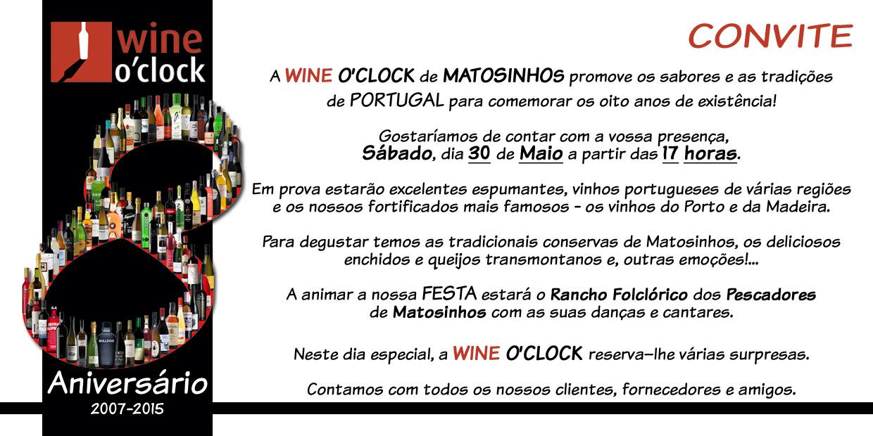 Para comemorar o oitavo aniversário, no próximo dia 30, a partir das 17 horas, a Wine o'Clock de Matosinhos promove os sabores e as tradições de Portugal!