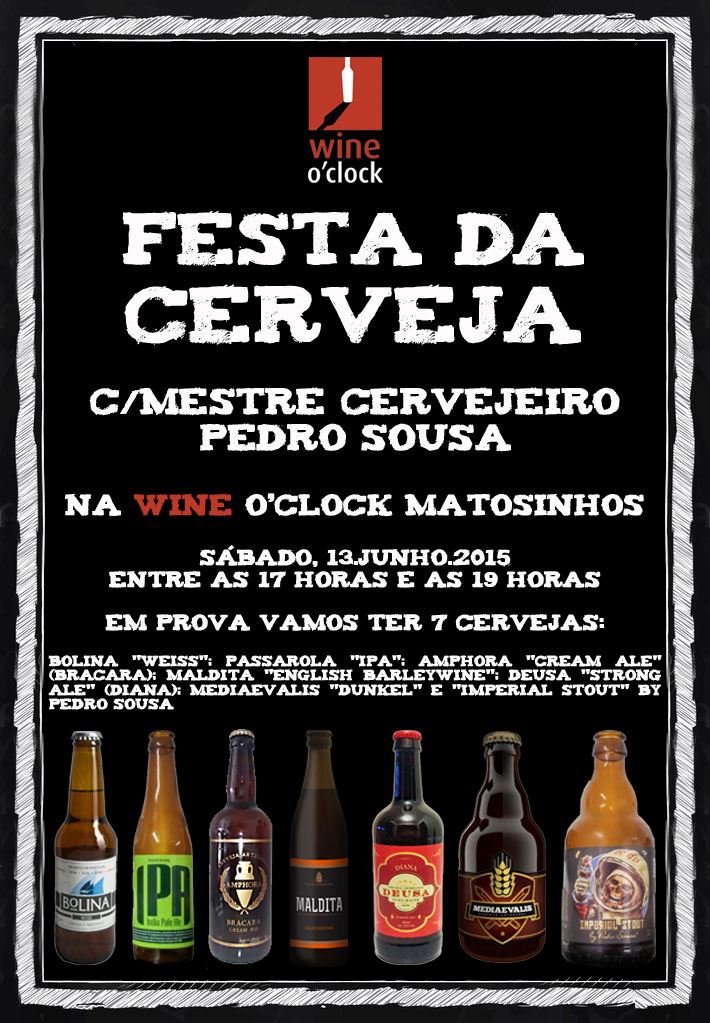 A Wine o’Clock de Matosinhos este sábado, dia 13 de Junho entre as 17:00 e as 19:00 vai realizar uma Prova de Cervejas com o mestre cervejeiro Pedro Sousa.