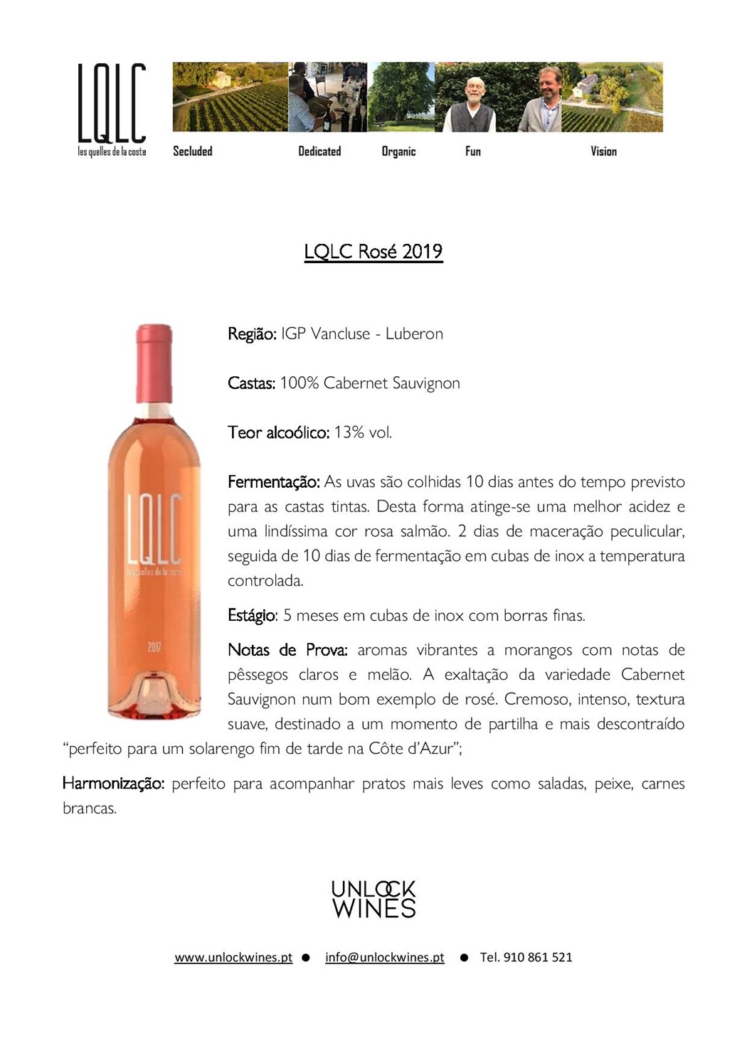 Estão já disponíveis no mercado nacional todas as cinco referências do produtor: Les 7 Quelles N.V (PVP 15,50€), LQLC Rosé 2019 (PVP 15,50€) e versão Magnum 1,5L (35€), LQLC Cabernet Sauvignon 2015 (PVP 29€), LQLC Pinot Noir 2014 (PVP 29€) e Les 14 Quelles 2017 (PVP 61€), também em versão Magum 1,5L (141€). Para mais informações sobre os vinhos Les Quelles de La Coste, consultar www.unlockwines.pt.