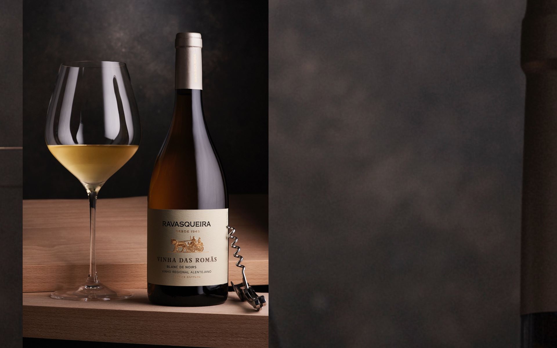 Originário de uma parcela muito especial da Ravasqueira, o Vinha das Romãs Blanc de Noirs é um vinho resultante das castas Touriga Franca e Syrah em conjugação com o terroir, composto por solo argilo-calcário, de influência rochosa de granito e xisto. Neste caso, uma parcela de vinha absolutamente ímpar na propriedade de Arraiolos: onde outrora se localizava um pomar de romãs, cujas raízes antigas ainda enriquecem aquele solo, vingam hoje videiras que produzem cachos de enorme qualidade e dos quais resultam vinhos com uma estrutura muito particular.